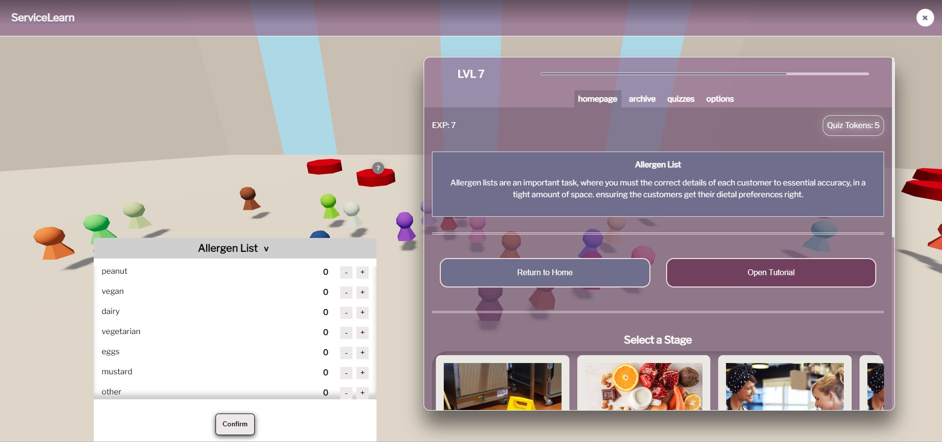 ServiceLearn is a browser-based training application built for the hospitality industry, intended to solve the issue of unintuitive, monotonous training experiences which seldom apply to the real-life scenarios which employees face.